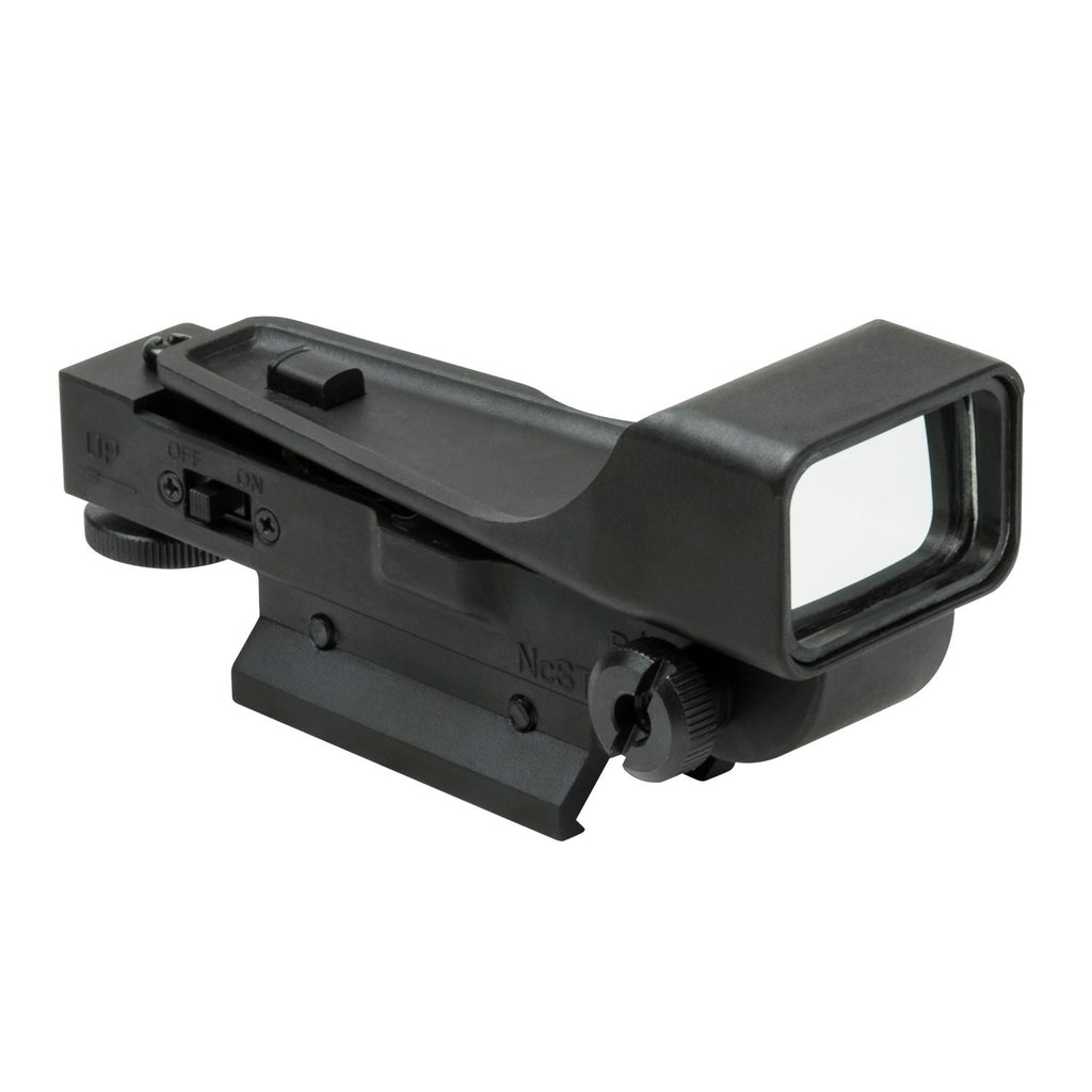 The NcSTAR Red Dot Sight with Weaver Base is a lightweight Polymer heads-up (22mm X 33mm) display Reflex Optic with Red Dot reticle that allows the shooter a wide field of view to quickly acquire and aim and engage their target. The integrated metal weaver type base mount will mount onto virtually any firearm with a Weaver, Picatinny, MIL-STD 1913 type rails.